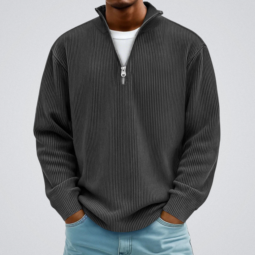 Su cuello con cremallera de tiro medio y su tejido estructurado ofrecen un look moderno y masculino, a la vez que garantizan una comodidad duradera.